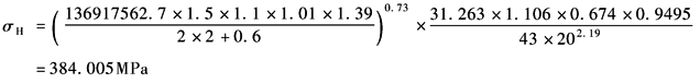 将上列各参数值代入接触应力计算公式得: