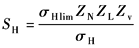 按表双圆弧齿轮的强度计算公式中公式计算安全系数SH: 寿命系数ZN:查表强度计算公式中各参数的确定方法中图13b,因循环次数大于5×107,ZN=1 润滑剂系数ZL:查表强度计算公式中各参数的确定方法中图14,按ν40=220mm2/s,得ZL=1.06 速度系数Zv:查表强度计算公式中各参数的确定方法中图15,按 计算公式: SH1和SH2均大于SHmin,齿面接触疲劳强度校核通过 |