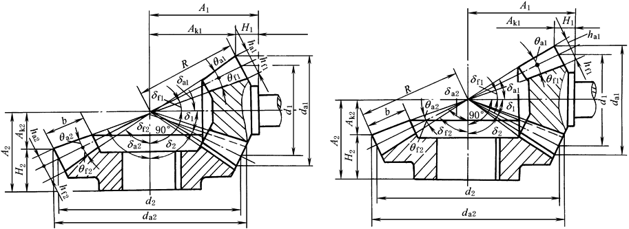 等顶隙收缩齿(S=90°) 不等顶隙收缩齿(S=90°) |