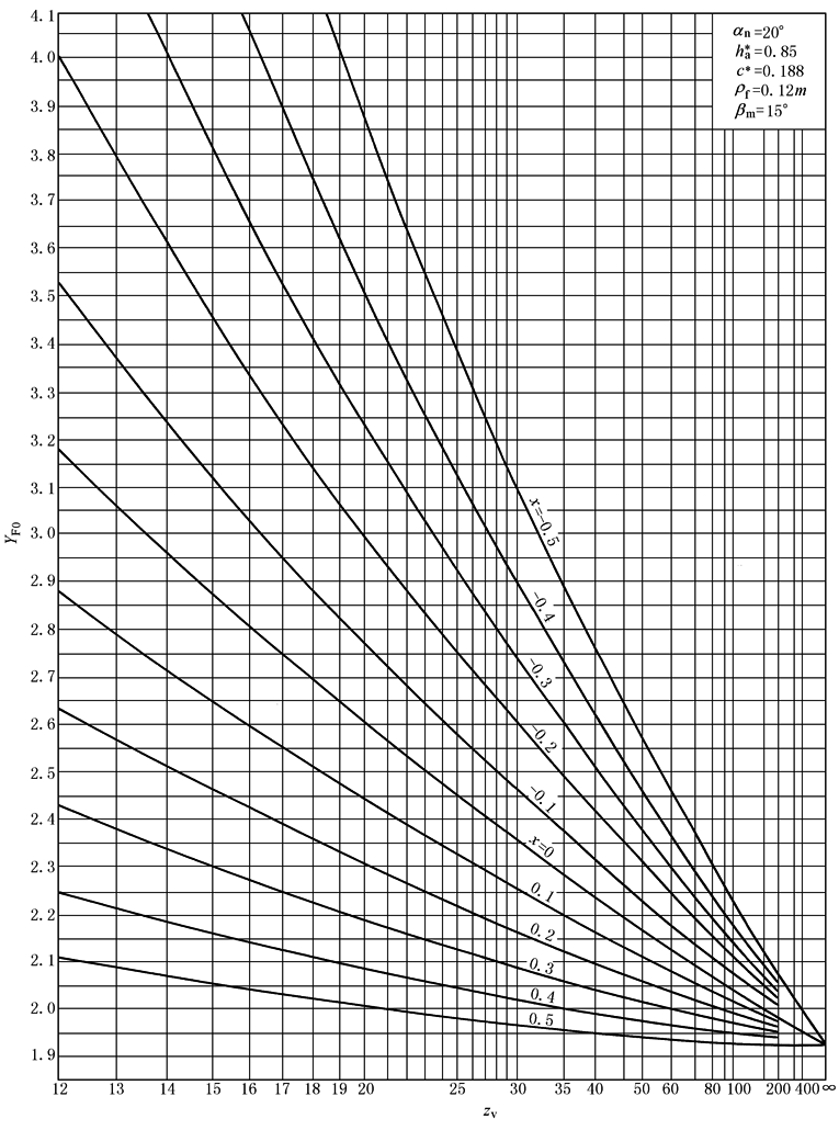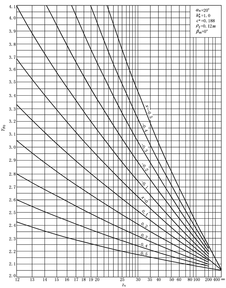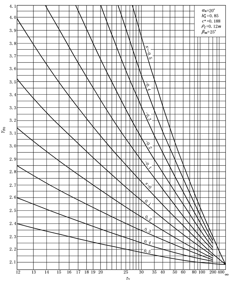 图4 无切向变位的齿形系数YF0(βm=35°) |