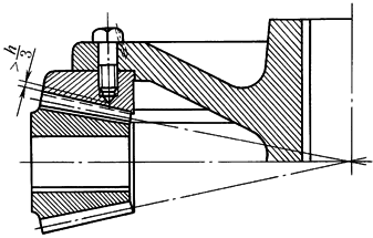 常用于分锥角近似为45°的场合 作用力方向应与轮毂辐板方向相一致,以减小变形 |