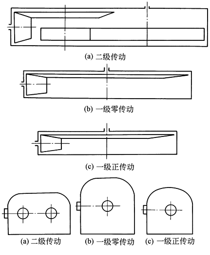 图3 三种减速传动箱结构比较 |