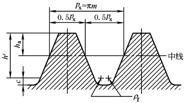 基本齿廓 圆柱蜗杆的基本齿廓是指基本蜗杆在给定截面上的规定齿形。基本齿廓的尺寸参数在蜗杆的轴平面内规定见图1