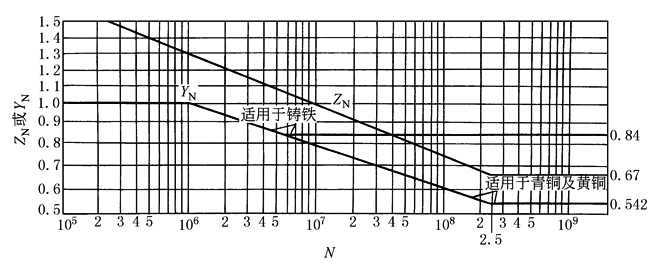 图3 寿命系数ZN及YN 注:N为应力循环次数。稳定载荷时:N=60n2t 变载荷时: