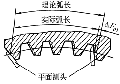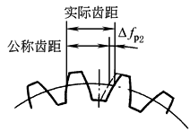 在蜗轮计算圆上,实际齿距与公称齿距之差 用相对法测量时,公称齿距是指所有实际齿距的平均值 |