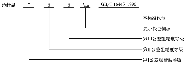 ② 蜗杆副的第Ⅰ公差组为7级,第Ⅱ、第Ⅲ公差组的精度为6级,侧隙为最小保证侧隙jmin,则标注为