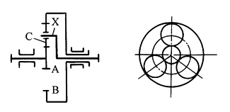 NGW(2Z-X)型行星齿轮传动 行星齿轮传动的型式可按两种方式划分:按齿轮啮合方式不同有NGW、NW、NN、WW、NGWN和N等类型;按基本构件的组成情况不同有2Z-X、3Z、Z-X-V、Z-X等类型。其中N类型——Z-X-V和Z-X型传动称为少齿差传动。代表类型的字母的含义是:N——内啮合,W——外啮合,G——公用行星轮,Z——中心轮,X——行星架,V——输出构件。如NGW表示内啮合齿轮副(N),外啮合齿轮副(W)和公用行星轮(G)组成的行星齿轮传动机构。又如2Z-X表示其基本构件具有两个中心轮和一个行星架的行星齿轮传动机构。目前我国还有沿用前苏联按基本构件组成情况分类的习惯,前述Z、X、V相应的符号是K、H、V 表常用行星齿轮传动的传动型式及特点列出了常用行星齿轮传动的型式及其特点 |