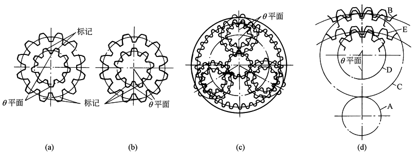 装 配 条 件 | 保证各行星轮能均布地安装于两中心齿轮之间,并且与两个中心轮啮合良好,没有错位现象 | |||||