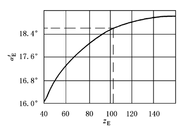 1.在一般情况下,内齿圈的变位系数推荐采用xE=+0.25,而内齿圈E和B的顶圆直径按daE=daB=dE-1.4m=(zE-1.4)m计算;行星轮C的顶圆直径daC应由A-C外啮合齿轮副的几何尺寸计算确定。以避免切齿和啮合传动中的齿廓干涉 2.C-E齿轮副啮合角的选取应使其中心轮A的变位系数为xA≈0.3 (1)当齿数差zE-zA为奇数,且变位系数xC=xE=+0.25时,可使xA≈0.3 (2)当齿数差zE-zA为偶数时,C-E齿轮副的啮合角α'E根据zE值由图3的线图选取可使xA≈0.3 (3)若允许中心轮A有轻微根切,则可取其变位系数xA=0.20~0.25。当齿数差zE-zA为奇数和变位系数xC=xE=0.27~0.32时,可满足上述条件。此时C-E齿轮副的啮合角α'E=20°,为高度变位 |