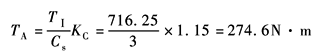 7) 计算几何尺寸 按表角变位齿轮传动的几何计算的公式分别计算A、C、B齿轮的分度圆直径、齿顶圆直径、基圆直径、端面重合度等(略) 8) 验算A-C传动的接触强度和弯曲强度(详细计算过程从略) 强度计算公式同定轴线齿轮传动。接触强度验算表齿面接触强度核算的公式所列公式。弯曲强度验算按表轮齿弯曲强度核算的公式所列公式确定系数KV和Zv所用的圆周速度用相对于行星架的圆周速度