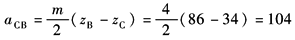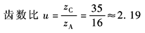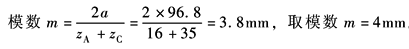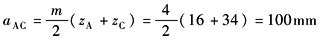 为提高啮合齿轮副的承载能力,将zC减少1个齿,改为zC=34,并进行不等角变位,则A-C传动未变位时的中心距为