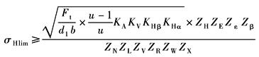 其他系数及参数的确定和强度计算过程。计算结果如下(安全): 太阳轮的接触应力σHA=1328.7MPa<σHp=1350MPa; 行星轮的接触应力σHC=1267.8MPa<σHp=1350MPa; 太阳轮的弯曲应力σFA=337MPa<σFp=784MPa; 行星轮的弯曲应力σFC=341MPa<σFp=784MPa 由于齿轮强计算极为繁复,费时,因此在目前已有多种软件产品面世的情况下,完全可以借助计算机软件高效地完成设计计算工作 9) 根据接触强度计算结果确定内齿轮材料 根据表齿面接触强度核算的公式的公式得