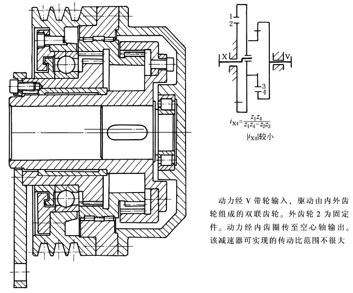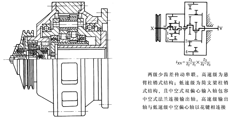 图19 轴向尺寸小的2Z-X型少齿差减速器
