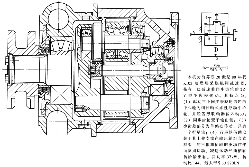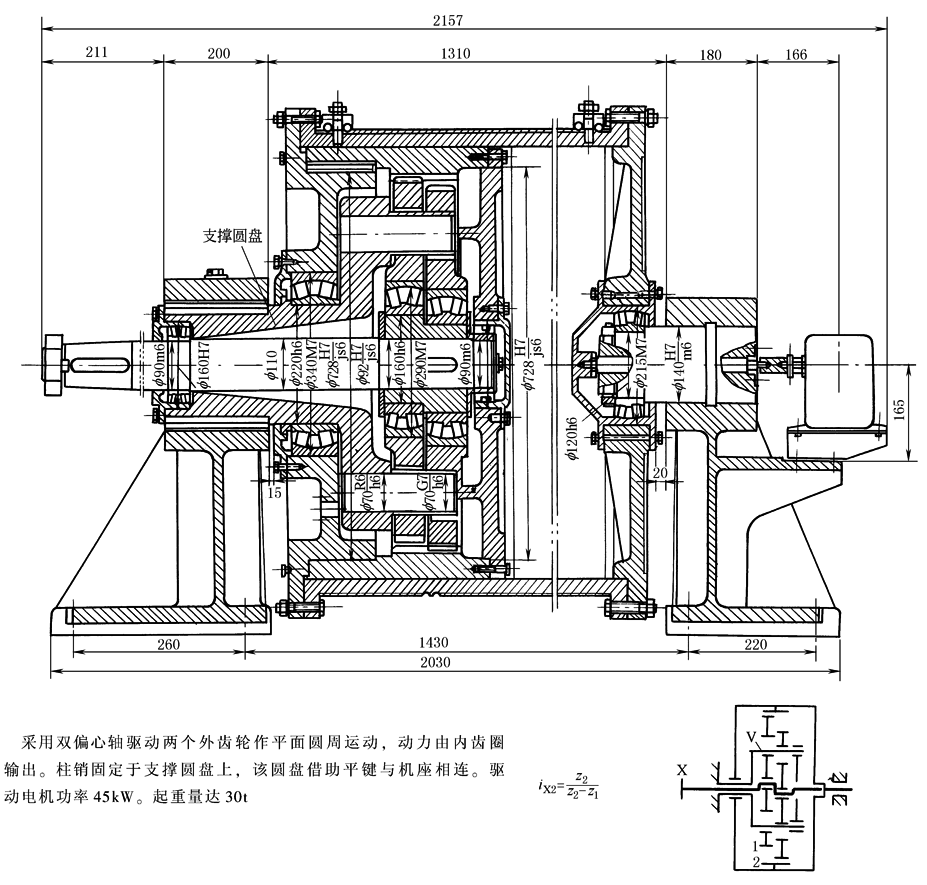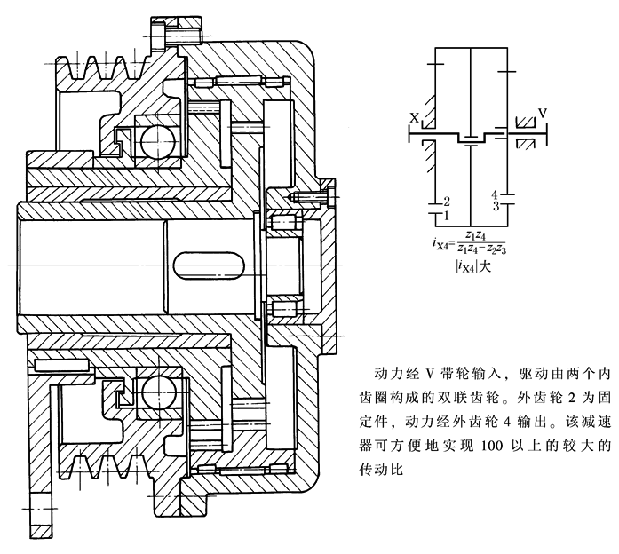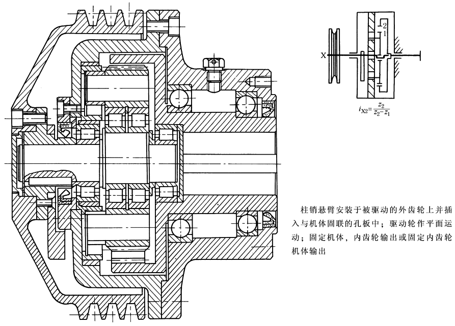 图7 内齿轮输出的少齿差卷扬滚筒(Z-X-V传动)