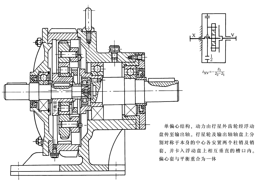 图9 单偏心浮动盘式少齿差减速器(Z-X-V型)