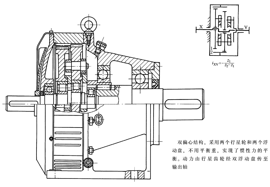 图10 双偏心浮动盘式少齿差减速器(Z-X-V型)