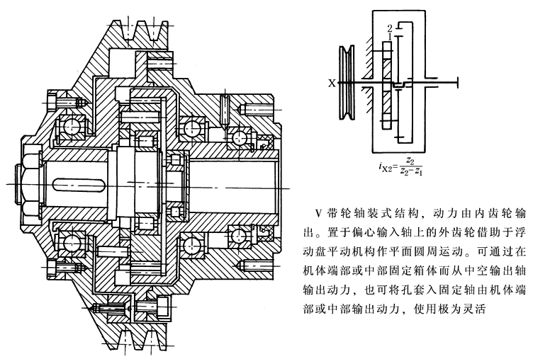 图11 V带轮浮动盘式少齿差减速器(Z-X-V型)