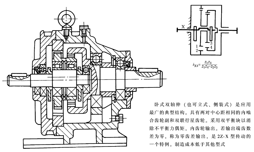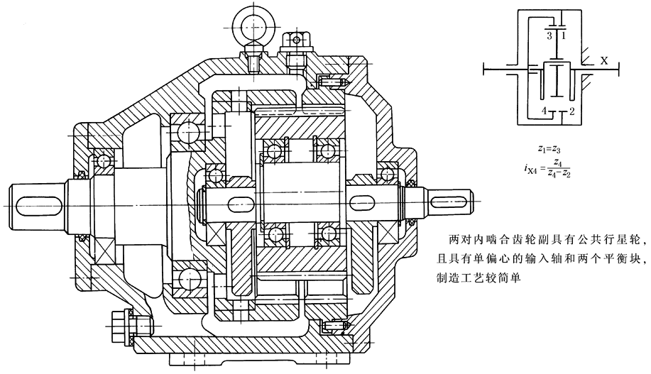 图15 具有公共行星轮的NN型[2Z-X(Ⅰ)型]少齿差减速器