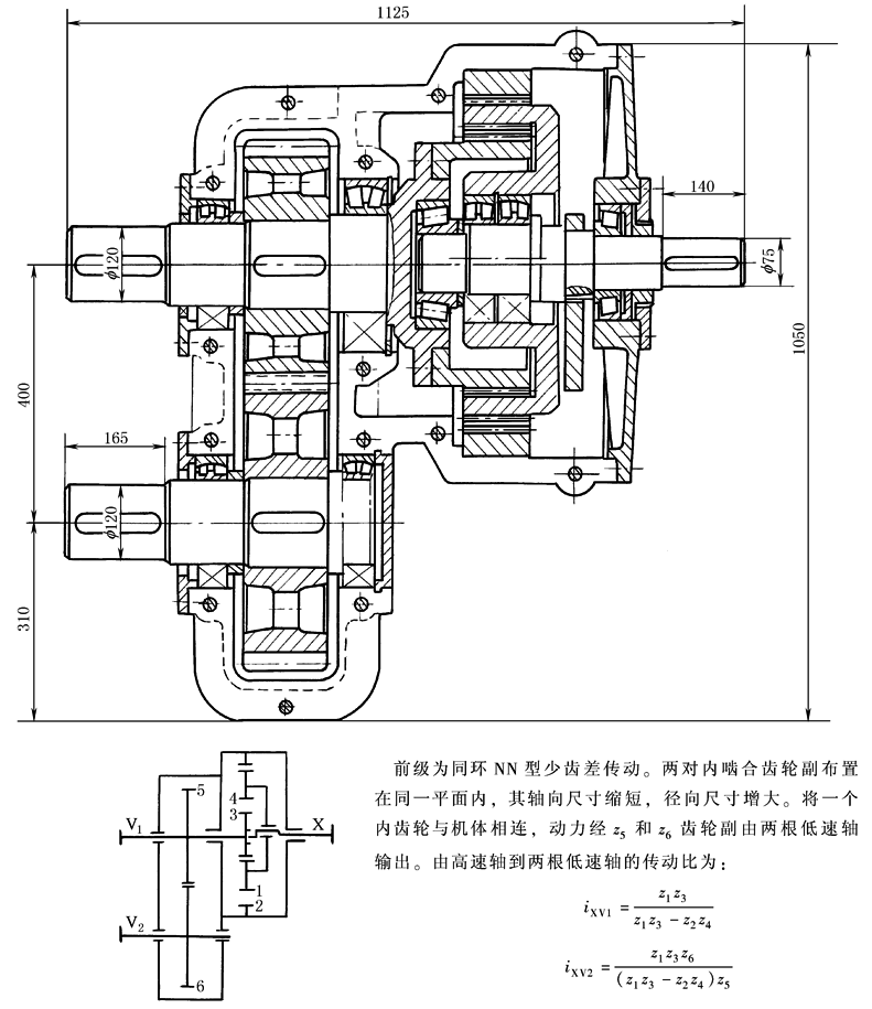 图16 具有内外同环齿轮的NN型[2Z-X(Ⅱ)型]少齿差减速器