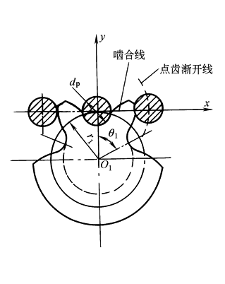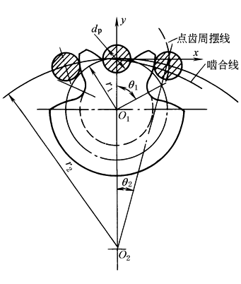 式中 r1——齿轮节圆半径,mm; dp——销轮销齿直径,mm; θ1——齿轮转角,rad