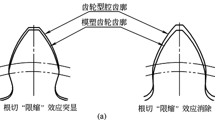 同一种少 齿数渐开 线齿轮的 两种齿形 “限缩”效 应比较 |