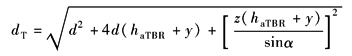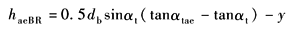 式中 RTBR——基本齿条齿顶修缘半径; haTBR——基本齿条齿顶修缘起点至基准线的距离; haeBR——与齿轮齿顶圆相对应的基本齿条齿顶高,