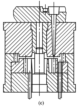 有以下两种方式:一是顶出制品时,推管上的导向销沿着一螺旋导槽运动(要求螺旋导槽的导程与型腔导程相同),保证在顶出制品过程中,推管与制品之间无任何相对运动。二是在推管与顶板结合处装有推力球轴承,保证推管能自由转动。当推管顶出制品时,塑件会自动的跟随推管一道沿着型腔轮齿螺旋方向顶出 |