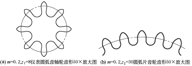 计时仪器用圆弧齿轮实例齿形放大图 |