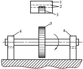 (f) 1—投影屏;2—公差带;3—被测齿轮轮片齿顶影像;4—V形架;5—被测齿轮 这种非接触式径跳仪一直在国内外手表齿轮生产中,被广泛用来检测齿轮组件中的齿顶径跳测量。测量时,将齿轮组件安放在两“V”形架4上,用手捏吹气皮球使齿轮旋转,通过检测仪上方的小光学投影屏1,可目测到被测齿轮轮片齿顶影像3的径跳误差是否超出公差带2的范围。根据以上原理,可在普通光学投影仪上用来检测两端带轴颈的塑料齿轮组件的跳动误差。此时,需要改制一套带双V形块或双阴顶的支架安放齿轮轴颈,将投影样板安置在影屏的适当位置上,经过标准件校准后,即可采用气吹或手动来实现非接触式检测齿轮Fr |