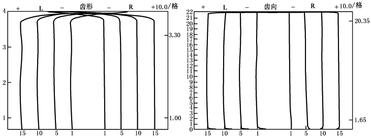 左 、 右 齿 廓 齿 距 误 差 记 录 曲 线 |