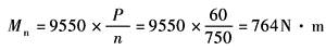 式中 n——减速器输入轴转速,r/min 如果工作级别不是M5,可按式(1-1)折算至M5工作级别的功率值PM5,然后再根据PM5、输入轴转速和公称传动比选择减速器 例 一台起重量为32t、跨度为25.5m的桥式起重机,其起升机构的电机额定功率为60kW,转速为750r/min,起升速度为8m/min,机构的工作级别为M6,选择减速器的传动比为40,要求第Ⅲ种装配型式,齿轮轴端 电机的额定转矩为