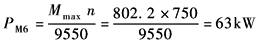 式中 φ8——刚性动载系数,φ8=1.2~2.0,φ8与电机的驱动特性和计算零件两侧的转动惯量的比值有关; φ5——弹性振动增大系数,φ5=1.5~1.7,当驱动机构中串接液力偶合器或摩擦离合器时,φ5=1.1~1.5 ③ 平衡变幅机构: 疲劳计算的基本载荷取为该零件承受的等效变幅静阻力矩,其他零件取为电机的额定力矩传到该计算零件力矩的1.3~1.4倍 当最大工作载荷低于2.7倍的额定力矩时,可不进行静强度校核,当超过此值时,应验算零件的静强度或选大机座号的减速器 (3) 计算功率值 根据计算基本载荷和转速可换算出该工作级别的功率值: