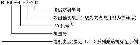 注:FJA型减速器输出轴为空心轴,并配有传动轴,在搅拌釜内通过联轴器与搅拌轴连接,检修轴密封时可以将传动轴抽出,不需拆除减速器。FJB型轴承间距大,承载能力大,适合长搅拌轴而又不需加底轴承的场合。FJC型适合于特殊驱动机构和特殊要求的场合。FJD型用于传动装置位于搅拌釜下方的场合。 |