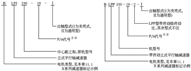 注:①见表LPJ、LPB、LPP型两级减速器承载能力和表LPJ、LPB三级减速器承载能力 mm |