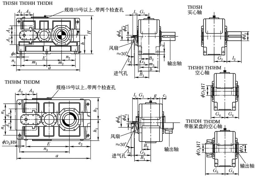 TH3.H,TH3.M的安装尺寸(规格13~22) |