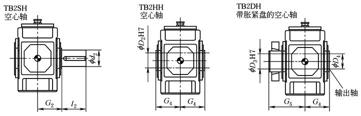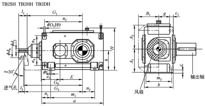 ① d1和d2的公差:d1(和d2)≤f 24mm为k6,f 28mm≤d1(和d2)≤f 100mm为m6,d1(和d2)>f 100mm为n6。 ② 输出轴D2键槽按GB/T1095—2003。 |