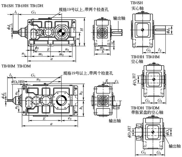TB4.H,TB4.M的安装尺寸(规格13~22) |