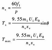 E0—— 空载电势,V θ —— 电势与电压的相角差 Ts—— 同步转矩,N·m xs—— 同步电抗,Ω |