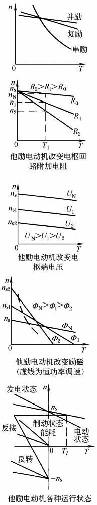 调速性能好,范围宽,在电子装置控制下,能充分适应各种机械负载特性的需要,但其价格贵,维护复杂 串励电动机的特点是启动转矩大、过载能力大、特性软,适用于电力牵引机械和起重机等 复励电动机的启动转矩和过载能力比并励电动机大,但调速范围稍窄。接成积复励时,适用于启动转矩很大、负载具有强烈变化的设备 |