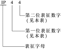 ①表示防护等级的标志,由表征字母“IP”及附加在后的两个表征数字组成 示例: