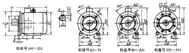 机座 号 | 安 装 尺 寸 及 公 差 | 外 形 尺 寸 | ||||||||||||||||||||||||||||||||||||