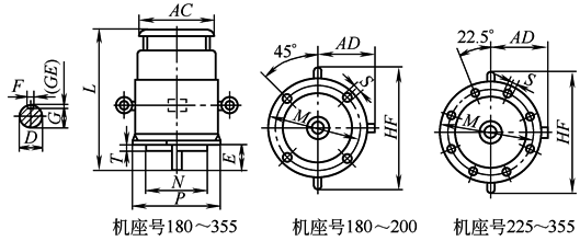 ① G=D-GE。GE的极限偏差对机座号80及以下为 ② P为最大极限值。 ③ R为凸缘配合面至轴伸肩的距离。 注:Y2、Y3系列安装尺寸相同,但个别外形尺寸各厂家可能有出入。 |