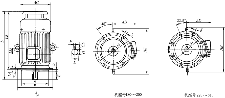 V1外形及安装尺寸 (JB/T 6449—1992) mm |