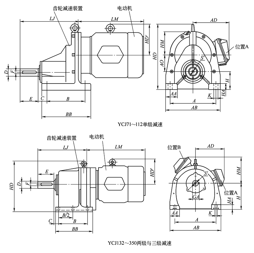 注:配用电动机尺寸见表配用电动机尺寸。 |