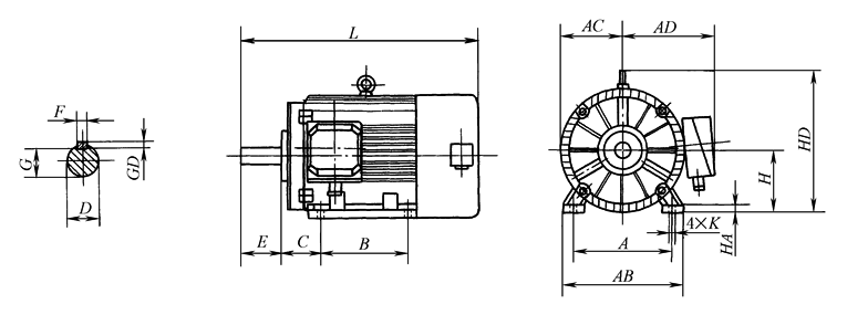 机座带底脚、端盖无凸缘(IMB3、IMB6、IMB7、IMB8、IMV5、IMV6)外形及安装尺寸 mm |