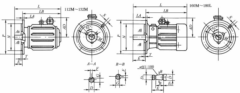 注:R为凸缘配合面至轴伸肩的距离,D2为定、转子接线口尺寸。 |