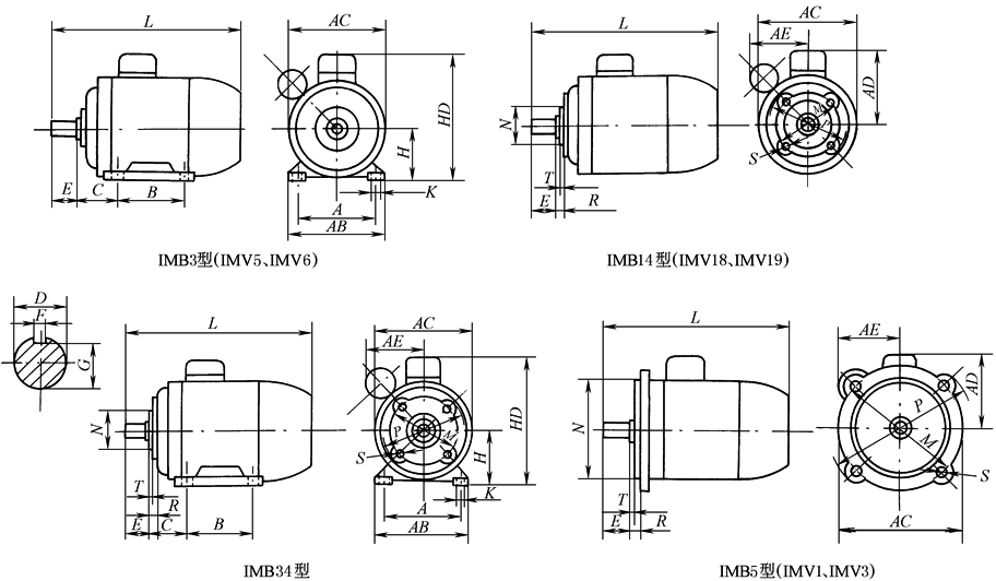 YS、YU、YY系列电动机安装尺寸及外形尺寸 |