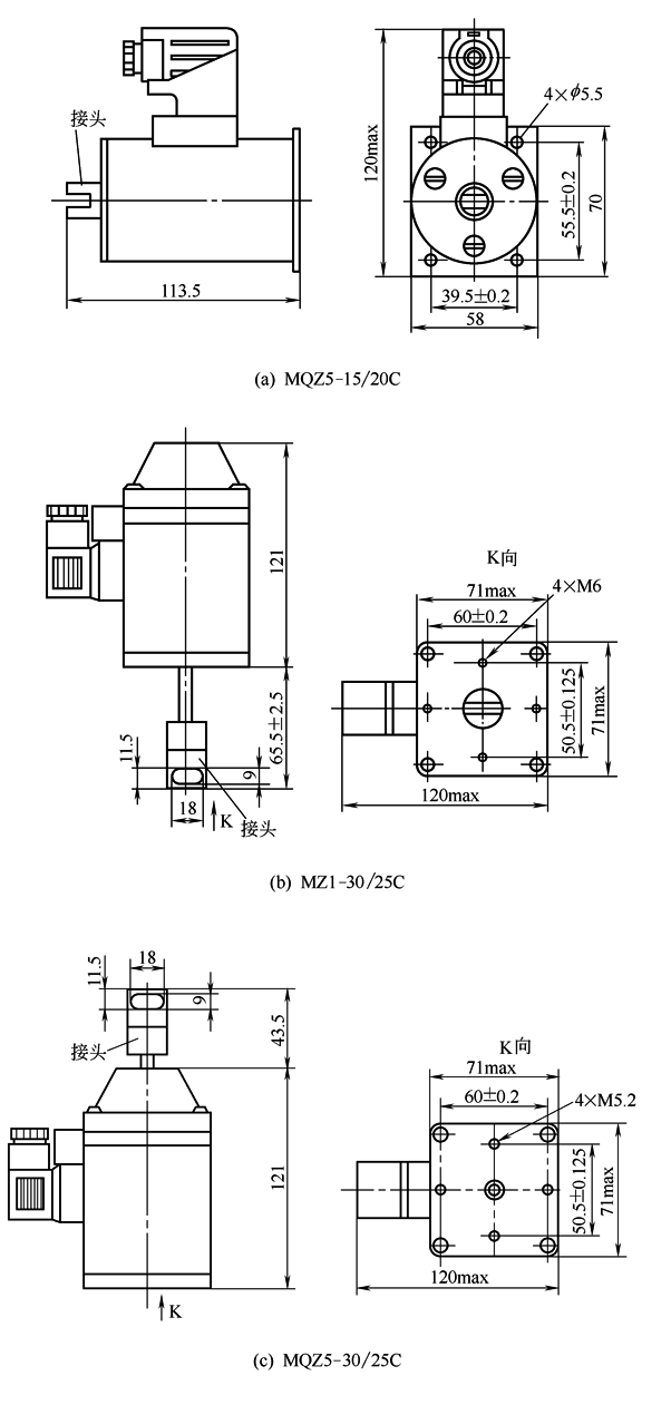 (3) 外形及安装尺寸 外形及安装尺寸见下图,接头尺寸可按用户要求加工