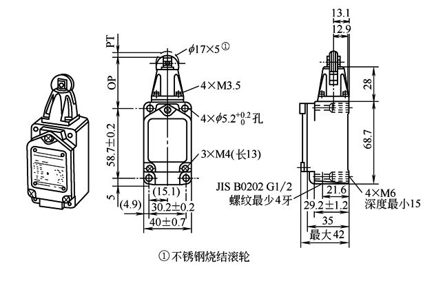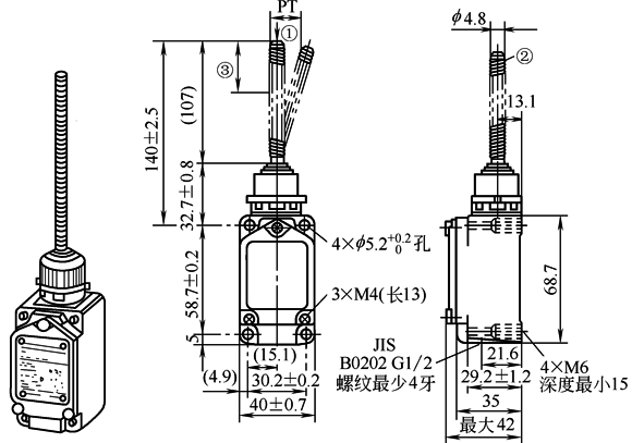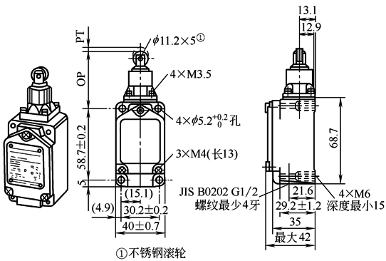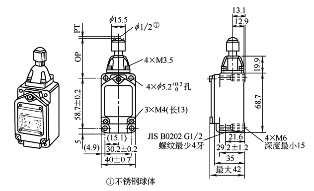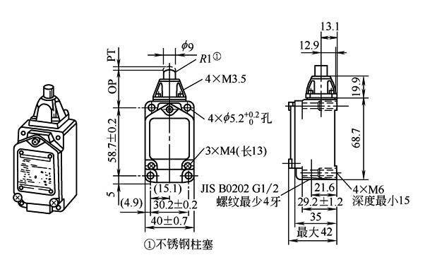 表5 柱塞型行程开关的外形及安装尺寸与动作特性 mm |