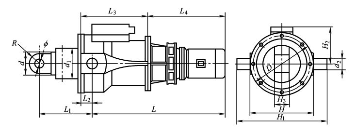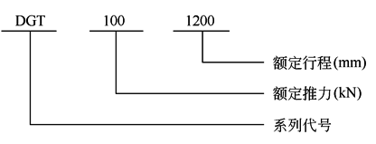 (1) 结构特点 DGT型电动推杆为重型电动推杆,采用电动机减速器直联,推力大,体积小 (2) 标记示例